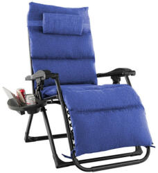 Kényelmes, dönthető pihenőszék – tökéletes kertbe és teraszra ☀️ Élvezze a tökéletes pihenést ezzel a párnázott zéró gravitációs székkel! A levehető huzat és a kényelmes párnázás garantálja a maximális komfortérzetet, miközben stílusos kiegészítője lesz otthonának. Miért válassza ezt a széket?Kiváló kényelem: Vastag párnázás az ülőfelületen és a háttámlán a maximális kényelemért. A levehető fejtámla extra kényelmet biztosít. ? Praktikus tároló: Oldalsó tárolórekeszek italoknak, könyveknek, telefonnak – minden kéznél van! ?? Könnyű kezelhetőség: A gravitációs mechanizmus lehetővé teszi a könnyű döntést a testsúly segítségével. Levehető huzat: Könnyen tisztítható és karbantartható. ? Robusztus kivitel: 150 kg-ig terhelhető. Stílusos dizájn: Modern és elegáns megjelenés, amely feldobja kertjét vagy teraszát. Méretek:Állapot Méret (cm)Ülő 110x75x88Döntött 78x75x163Összecsukva 91x75x16,5Karfa 54x7,5Ülőfelület 50x51Fejpárna 35x17x5,5Háttámla 51x73Lábtávolság 60Kis tároló 11x4x6Nagy tároló 26x4x6Pohártartók Mélység: 6 cmAnyag: Fém, textil Súly: 11 kg Csomag mérete: 91x77x17 cm Csomag súlya: 12 kg