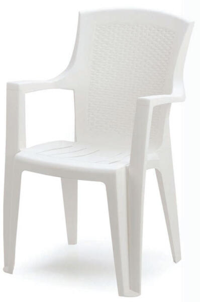 FIGYELEM! A termék szállítás szempontjából túlméretes, ezért a termékre eső szállítási költség eltér a rendszer által számítottól! A szállítási díjról kérjük egyeztessen telefonon vagy e-mailben! Több termék vagy több darab egyidejű rendelése esetén, az egy termékre jutó szállítási díj, kedvezőbb! Masszív erős kerti szék, magas támlás. Karfás szék. Rakásolható. Nagyon kényelmes műanyag szék. Kerti összejövetelekhez tokéletes választás. Négyféle színben forgalmazzuk. Tisztítása langyos vízzel, puha ronggyal történjen, a fehér színű kerti széknél lehetőleg minél gyakrabban, hogy a szürke por ne fakítsa el egy idő után a szép fehér színt!Olasz termék. Nevét az Édenről kapta, mert ebben a székben, egy gyönyörű kertben vagy tengerparton akár az édenben is érezheti magát. Terhelhetősége: 100 kg max Súly: 3,4 kg Rakásolható székEgyéb Eden székeink: Eden rattan hatású karfás műanyag kerti szék fehér O236 Eden rattan hatású karfás műanyag kerti szék zöld O230 Eden rattan hatású karfás műanyag kerti szék barna O230 Eden rattan hatású karfás műanyag kerti szék antracit O282